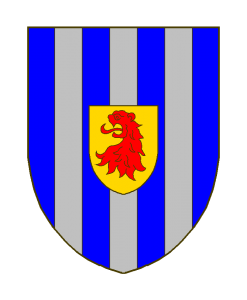 D’azur à trois pals d’argent, à l’écusson en abîme d’or à la tête arrachée de lion de gueules.