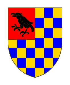 Echiqueté d’or et d’azur, au franc-quartier de gueules au corbeau de sable.