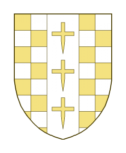 Échiqueté, au pal chargé de trois croisettes au pied fiché , l’une sur l’autre.