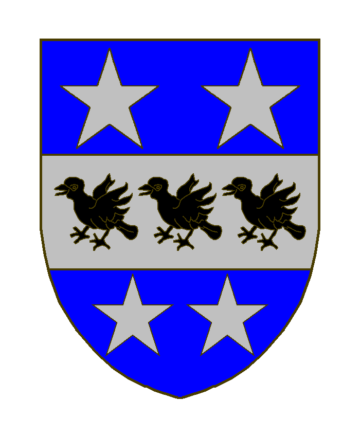D’azur à la fasce d’argent chargé de trois canettes (ou oiseaux essorants) de sable accompagnée de quatre étoiles du même, deux en chef, deux en pointe.