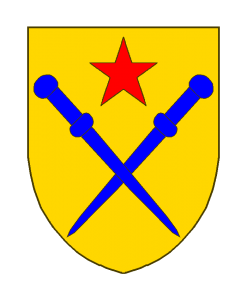 La Fontaine – variante 2 Sizes: 150 × 150 / 247 × 300 / 700 × 850 de La Fontaine - variante 2 Armes: D’or à deux bourdons de pèlerin d’azur posés en sautoir, brisé en chef d’une étoile de gueules. Sources du Dr. Loutsch: (H.A./M.W.). Zitiert nach (Quelle): A.L. Seite 491
