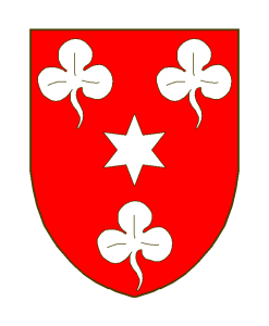 De gueules à une étoile à six rais accompagnée de trois trèfles.