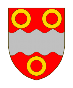 De gueules à la fasce ondée d’argent accompagnée de trois annelets d’or.