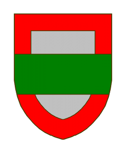 D’argent à la bordure de gueules, à la fasce de sinople brochant.