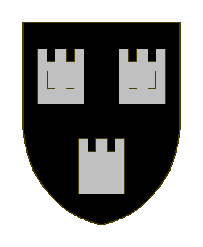 De sable à trois tours à l’antique d’argent (parfois dites herses renversées, mauvaise lecture pour les tours).