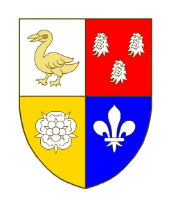 Écartelé: au I une canette au II de gueules à trois masques de léopard, au III d’or à une rose,au IV d’azur à une fleur de lis