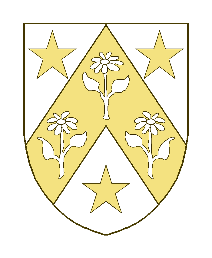 D’azur au chevron d’or chargé de trois écueilles ou girofles au naturel, et accompagné de trois étoiles à six rais d’or.
