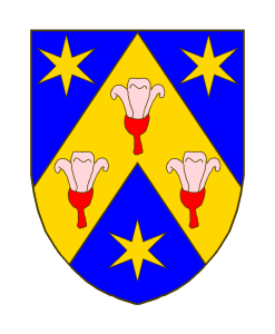 Un chevron chargé de trois fleurs à plusieurs pétales, accompagné de trois étoiles à cinq rais.