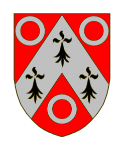 De gueules au chevron d’argent chargé de trois mouchetures d’hermines, et accompagné de trois annelets aussi d’argent.