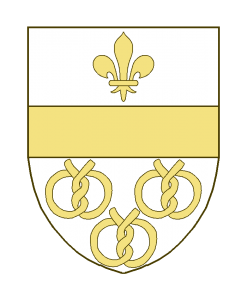 Une fasce accompagnée en chef d’une fleur de lis, en pointe de trois bretzels.