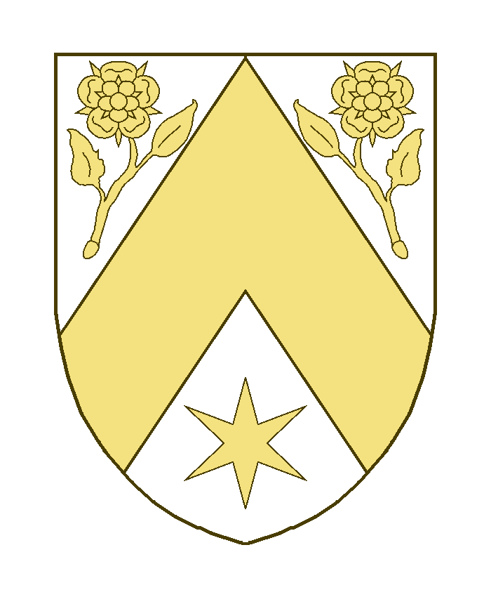 Un chevron, accompagné en chef de deux roses, tigées et feuillées, en pointe d’une étoile à six rais.