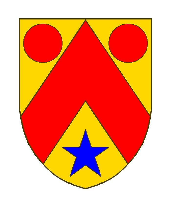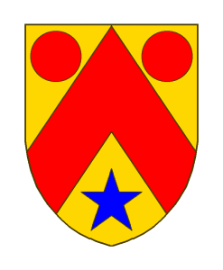 Lescamoussier – variante 2 Sizes: 150 × 150 / 247 × 300 / 700 × 850 de Lescamoussier - variante 2 Armes: D’or au chevron de gueules, accompagné en chef de deux tourteaux de gueules, en pointe d’une étoile d’azur. Sources du Dr. Loutsch: (D.R.). Zitiert nach (Quelle): A.L. Seite 516