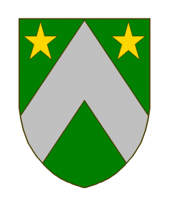 De sinople au chevron d’argent accompagné en chef de deux étoiles d’or.