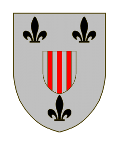 D’argent à trois fleurs de lis de sable, au pied Coupé, en coeur un écusson d’argent à trois pals de gueules.