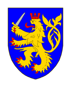 D’azur au lion d’or, la queue fourchue et passée en sautoir, armé,lampassé et couronné de gueules, tenant de la patte droite une épée nue garnie d’or.