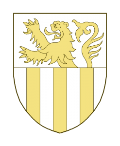 Coupé, en chef un lion issant, en pointe à trois pals.