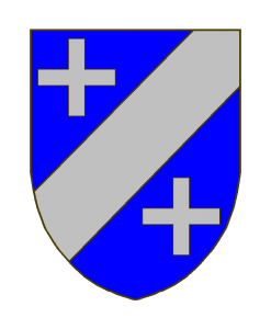 D’azur à la barre d’argent accostée de deux croisettes du même.
