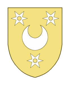Un croissant accompagné de trois molette, deux en chef, une en pointe.
