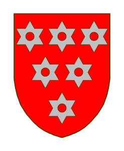 Un écran échancré, en forme d’éventail, de gueules aux six molette.