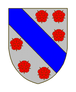 D’argent à la bande d’azur, accompagnée de six roses de gueules mises en orle,