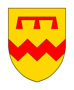 D’or à la fasce abaissée vivrée de gueules, surmontée d’un lambel à trois pendants du même.