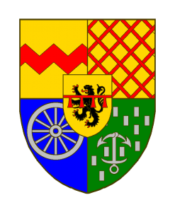 - Sur le tout de Blankenheim, le lambel à quatre pendants (donc: d’or au lion de sable, armé et lampassé de gueules, au lambel à quatre pendants de gueules brochant).