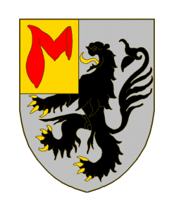 D’argent au lion de sable, armé et lampassé d’or, au franc-quartier d’or à la manche mal taillée de gueules.