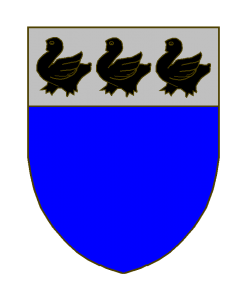 D’azur au chef d’argent chargé de trois merlettes de sable.