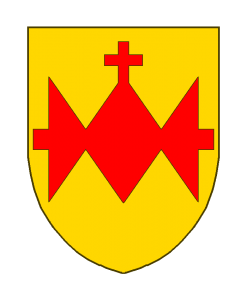 D’or à une pièce en forme d’une fusée surmontée d’une croix, et acollée de deux demi-fusées non mouvantes, se terminant latéralement par une petite tige alésée, le tout de gueules.