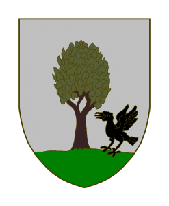 D’argent au tilleul au naturel posé sur une terrasse de sinople accosté au pied à sénestre d’une corneille essorante de sable.