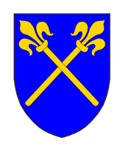 D’azur à deux sceptres fleurdelisés d’or en sautoir.