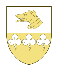 Coupé, en chef une tête de lévrier colleté, en pointe trois trèfles rangés en fasce.