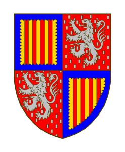 Écartelé: aux I et IV d’or à quatre pals de gueules, à la bordure engreslée d’azur, aux II et III de gueules au lion d’argent, le champ semé de billettes du même.