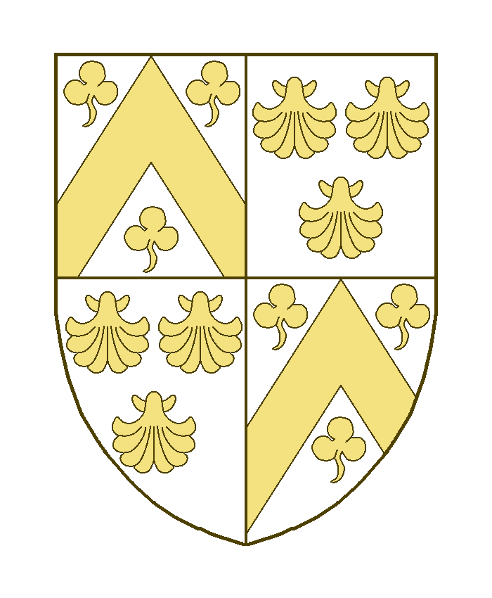 Écartelé: aux I et IV un chevron accompagné de trois trèfles, aux Il et III trois coquilles.