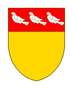 D’or au chef de gueules chargé de trois mésanges sans pied ni bec (on se demande comment on peut distinguer une telle mésange d’une merlette!).