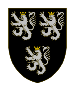 Un lion de écu naissant entre un vol d’argent et de sable.
