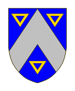 D’azur au chevron d’argent, accompagné de trois équerres d’or.