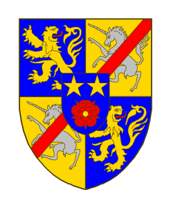 Écartelé: aux I et IV d’azur au lion contourné (en réalité: la tête contournée) d’or lampassé de gueules, aux II et III d’or à une licorne saillante d’argent, à la barre de gueules brochant sur la licorne; Sur le tout d’azur à deux étoiles d’or en chef, et une rose de gueules (boutonnée d’or ) en pointe.