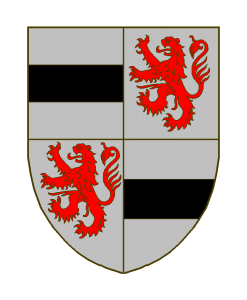 Écartelé: aux I et IV d’argent à la fasce de sable, aux II et III d’argent au lion de gueules.