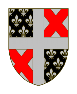 Écartelé: aux I et IV (de sable) semé de fleurs de lis (D’argent); aux II et III (de gueules) au sautoir (D’argent), à la croix brochant sur l’écartelé.