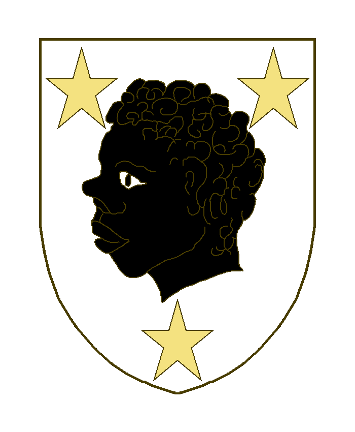 Une tête de more (Non tortillée), accompagnée de trois étoiles, deux en chef, une en pointe.