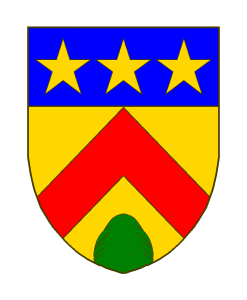 D’or au chevron de gueules soutenu d’une motte de sinople, au chef d’azur à trois étoiles d’or.