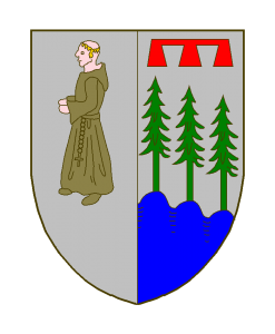 Parti, au I d’argent au moine au naturel, au II d’argent au mont de trois coupeaux d’azur, issant en bande de la partition, chaque coupeau surmonté d’un sapin au naturel, en chef un lambel de gueules (?).