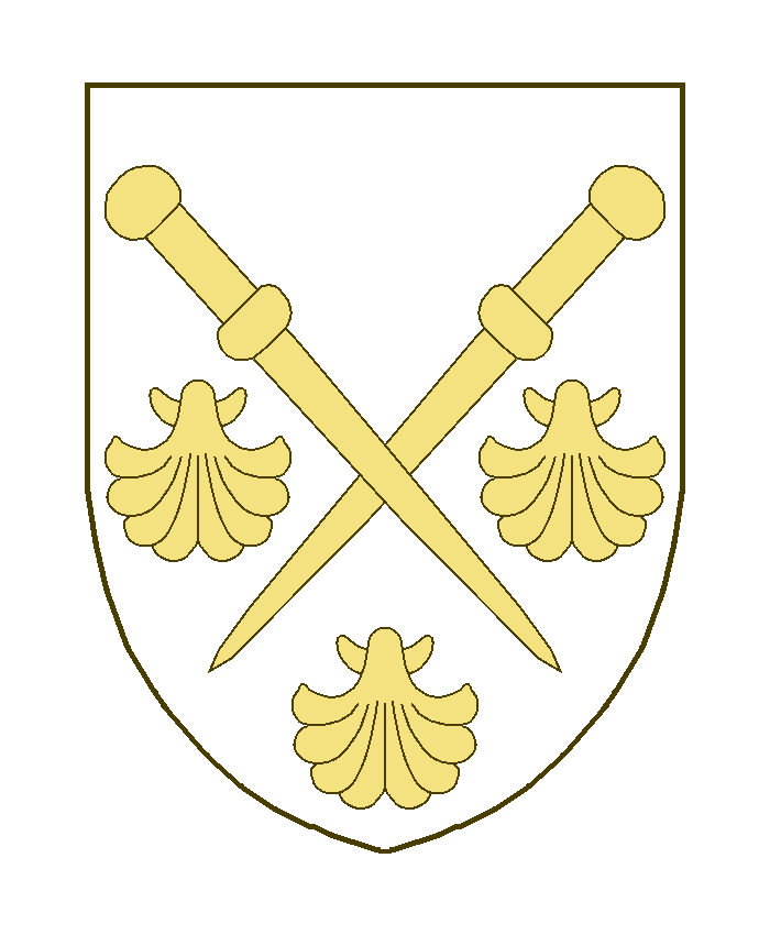 Deuxbourdons de pèlerin en sautoir, accompagnés de trois coquilles, deux aux flancs, une en pointe.