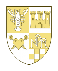 Écartelé, au I une écrevisse, au II un château, au III un coeur percé de deux flèches en sautoir, au IV unmonogramme formé des lettres N.A. R., au-dessus d’une champagne échiquetée.