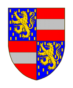Écartelé: aux I et IV comme ci-dessus [D’azur au lion d’or, le champ billeté du même], aux II et III de gueules à la fasce d’argent.