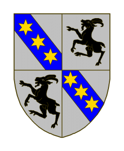 Écartelé: aux I et IV d’argent à la bande d’azur chargé de trois étoiles à six rais d’or, aux II et III d’argent au bouc rampant de sable.
