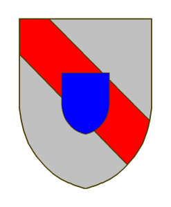 D’argent à la bande de gueules, à l’écusson d’azur brochant sur le tout.