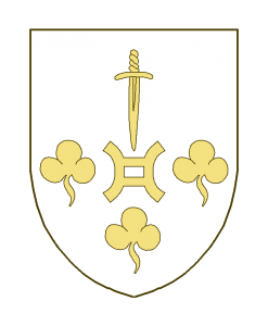 Une anille en coeur, surmontée d’une épée en pal, la pointe en bas, et accompagnée de trois trèfles, deux aux flancs, un en pointe.