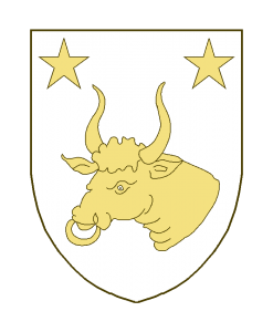 Une tête et col de taureau non mouvant, annelé, accompagné en chef de deux étoiles.